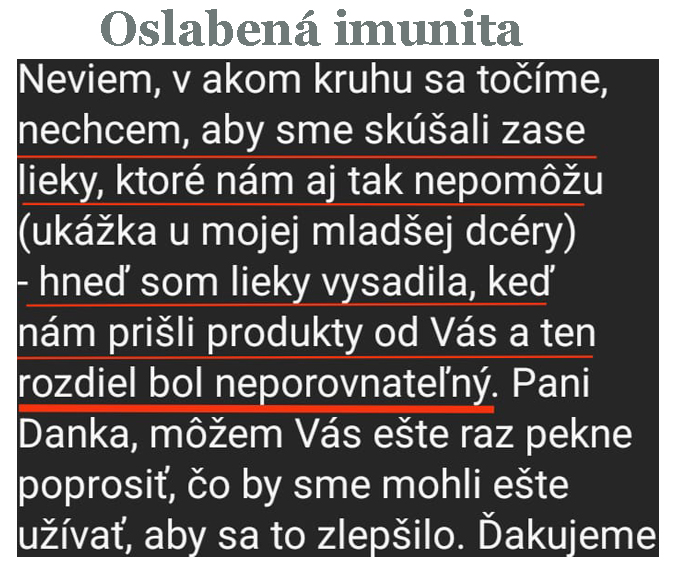 V nadväznosti na bod 1 - nejaký čas sme si to zbierali (aj keď sme o tom možno nevedeli), nejaký čas si vyžaduje aj odstránenie problému. Vymažme si nastavenie - dám si tabletku a problém zmizne. Tento postup je iný. Organizmus potrebuje dostať to, čo si cez chorobu pýta a potrebuje čas, trpezlivosť a zhovievavosť na nápravu. Ak teda klientka čaká 1 produkt a vybavené, môže byť sklamaná. Zvyknem odporúčať (s výnimkou detí a jednoduchých prípadov - napr. preventívna podpora imunity) 2-3 základné produkty + 2-3 doplnkové. Tieto pôsobia synergicky, z rôznych aspektov na riešenie a úľavu v danom stave. Ja sama užívam 5-6 výživových doplnkov len preventívne, nakoľko si uvedomujem, že bežnou stravou neviem pokryť potreby môjho organizmu k plnej spokojnosti.
