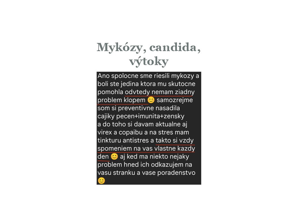 POZOR: Suma balíčka s kúrou sa môže pohybovať v rozpätí 80 - 120 eur +/- . Nemá zmysel predpisovať 1 kapsuly alebo 1 tinktúru a ani to nečakajte. Ak sa chcete zbaviť zdravotného problému, neexistuje 1 zázračný prípravok. Treba pôsobiť komplexne kombináciou prípravkov, ktoré v synergii každý svojím spôsobom budú riešiť daný problém. Duplom, ak máte viac ťažkostí.